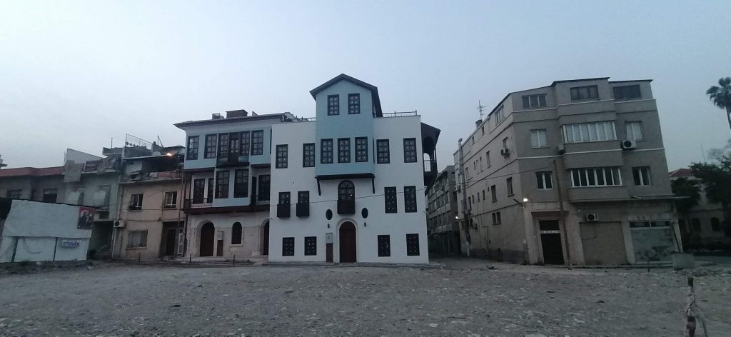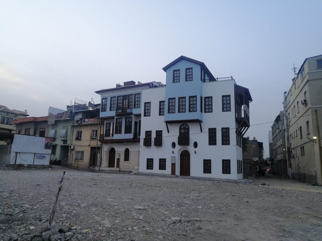 Adana’daki tarihi hamam Irmak hamamı öylesine tarihî ki gittiğiniz zaman dış kaplamasından bunu hissedebilirsiniz. Bildiğiniz klâsik erkek hamamı… Aslında civarda, mimarisiyle de ikonik bir yapı. Fakat hamamın önündeki eski bina yıkılınca civarın da peyzajı gerçekten değişti. Eski bina derken orada düğün salonu vardı. Bebe Müzikhol isminde. Artık yok. Resimde görünen eski adana tipi bir ev var. İşte orası koruma altında. Görüldüğü üzere eskilerden bir mimari çizgiye sahip olduğu ortada.