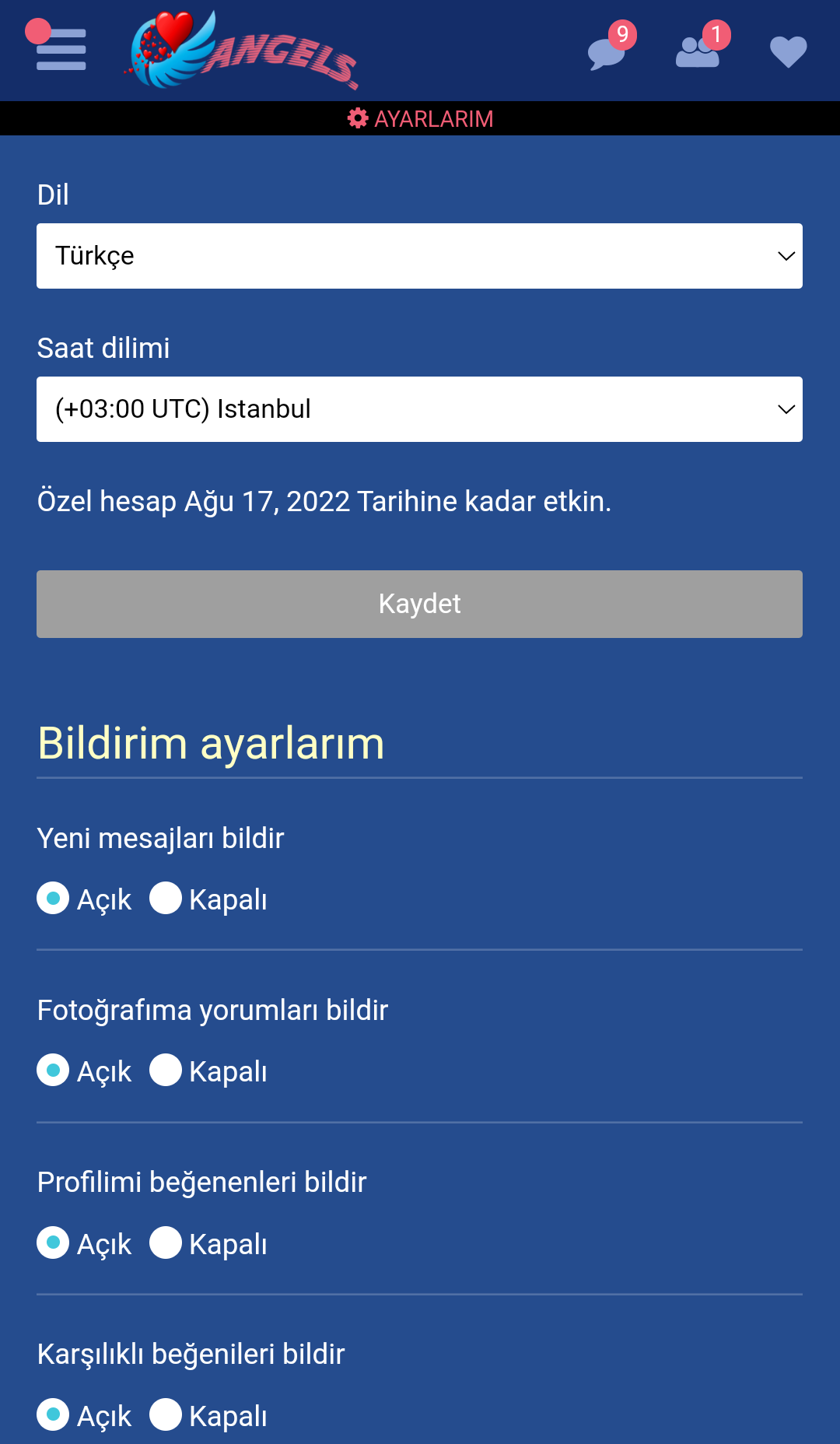 Çok fazla bildirim almaz ve aynı anda çevrim içi olan fazla üye görmezsen dert etme. Tüm üyeler gerçek olduğu için bıraktığınız mesajlara dönüş yapacaklardır. Burada asıl kurgu doğru bir mail adresi kullanmış olmanızda saklı. Tüm üyeler e-posta etkinleştirme adımından geçer. Sistem bu kişilere sürekli bildirim gönderir. Böylece kullanıcılar yeni üyelerden haberdar edilir. Tüm bildirim ayarlarını kapatabilir ve istediklerini açık bırakabilirsin. Bildirim maillerini dönem dönem açıyor veya kapatıyoruz. Çünkü bu ücretli bir servistir ve çeşitli sebeplerden ötürü kapatmamız gerekebiliyor. Bu yüzden ihtiyacınız olmayanı kapatmanız tavsiye edilir.