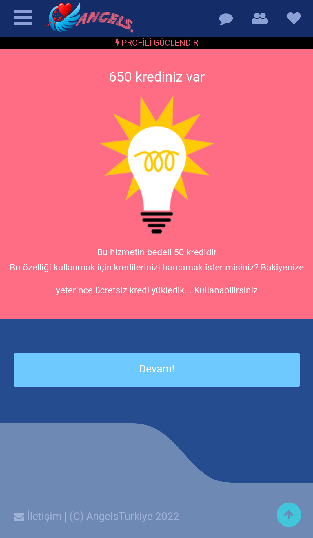 AngelsTurkiye’nin şık ve pratik sohbet ortamı tam da aradığınız özellikleriyle bir hayli eğlenceli. Mobil uygulama veya tarayıcıdan girdiğinde alttaki gibi çalışacak. Tüm kilit özellikler tek ekranda. Daha fazlası için profiline veya ayarlara tıkla.