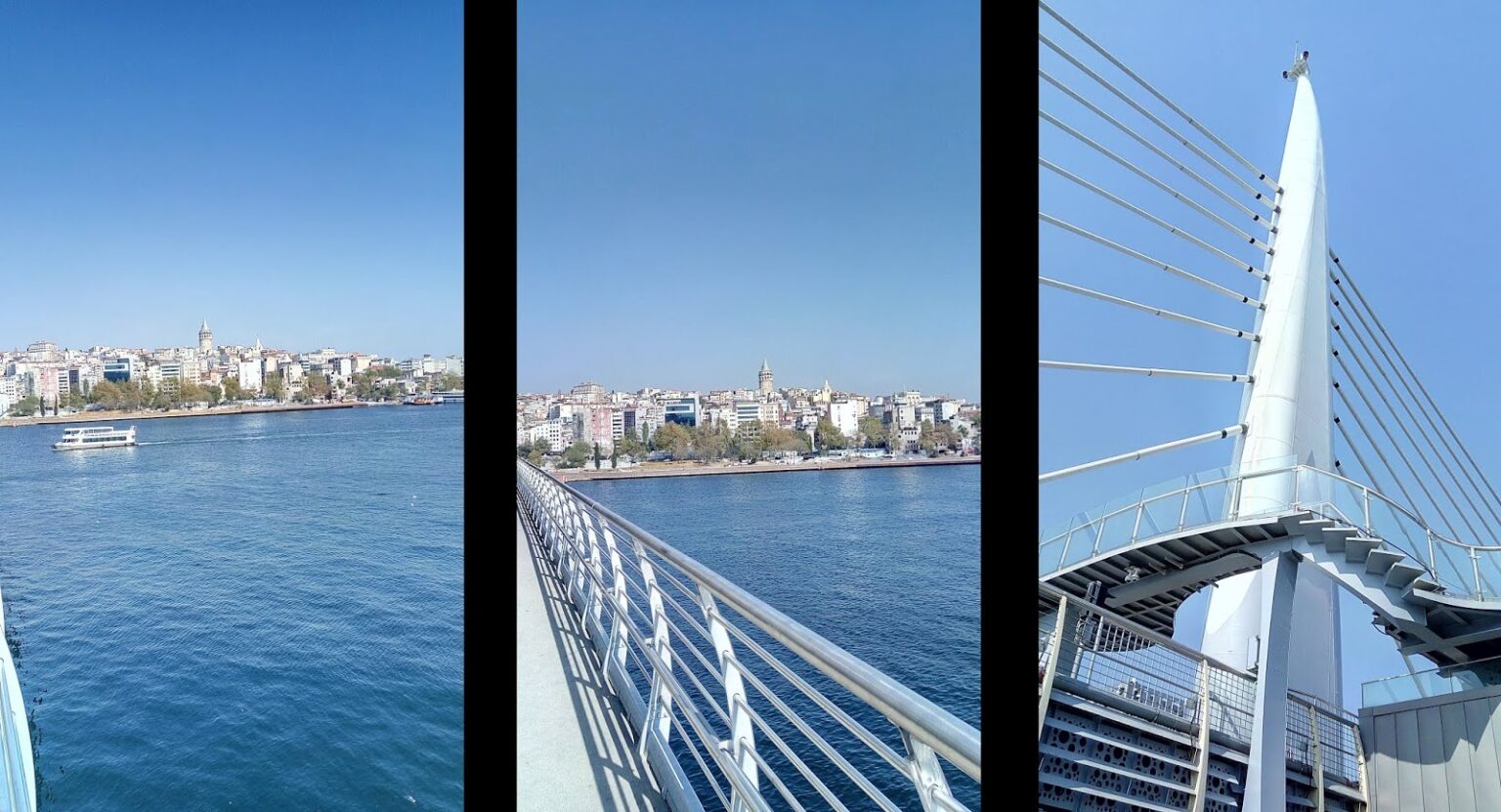 Şehrin orta yerinde metroya biniyorsunuz ve Şişhane’den sonraki tünele girince başlıyor zaman yolculuğu. Birden bir köprü üstündesiniz ve dışarısı geçmiş yüz yılların dokularıyla çevrili bir muhteşem bir manzara. Tüm Haliç gözler önünde. Maalesef muhteşem fotolar çekemedim çünkü ve telefonlar veya fotoğraf makinelerine böyle güzellikleri sığdırabilmek gerçek profesyonellik istiyor… Telefonumla sizlere bunları çektim. Yine de fena değiller. Zaten bu manzarayı bilen bilir!