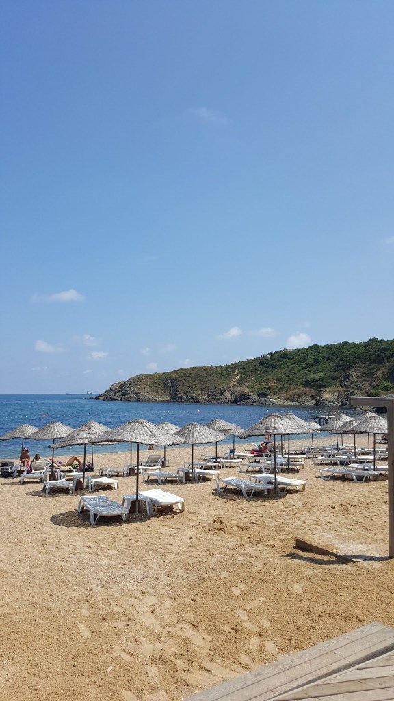 Kumsal muhteşem. Doğa deniz güneş kum kesinlikle Marmaris’i Bodrum’u aratmıyor. Yani tatil için illede uzak yerlere gitmenize gerek yok. İstanbul’un içinde ama sanki bambaşka bir yerdeymişsiniz gibi hissettiriyor. Halbuki araçla yarım saat civarında varabiliyorsunuz. Kim derki bu tatil alanları İstanbul’un yarım saat ilerisinde diye. Ancak bu ve benzeri tesislerde konaklama yok. Yani civarda belki vardır ama tesis kapandığı için civarı bilmek lazım. Civarda bir otelde kalsanız her gün giriş parası insanın canına değer yahu. Neyse işte bizim geçen seneki ziyaretimizden kalan muhteşem fotoğraf ve videolara bakabilirsiniz.