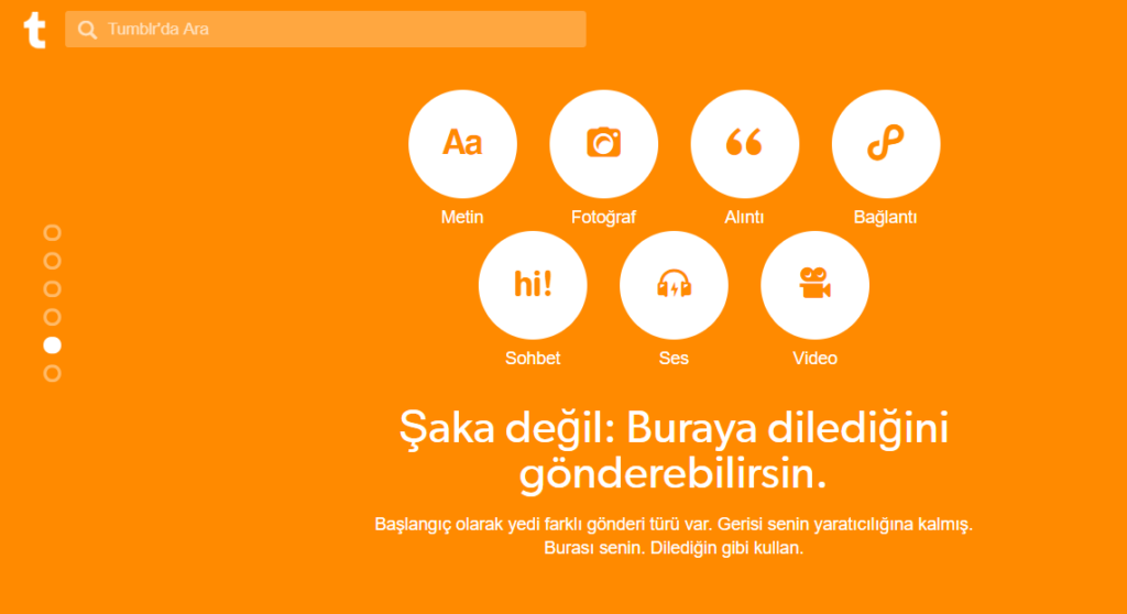 Son olarak, Tumblr’ın kendi içinde Tumblr uzantılı bir sayfası var mı diye merak ederseniz, evet o da var işte burada https://tumblr.tumblr.com/ ama ilginç bir şekilde Bu Tumblr’da da hiç içerik yok ;)